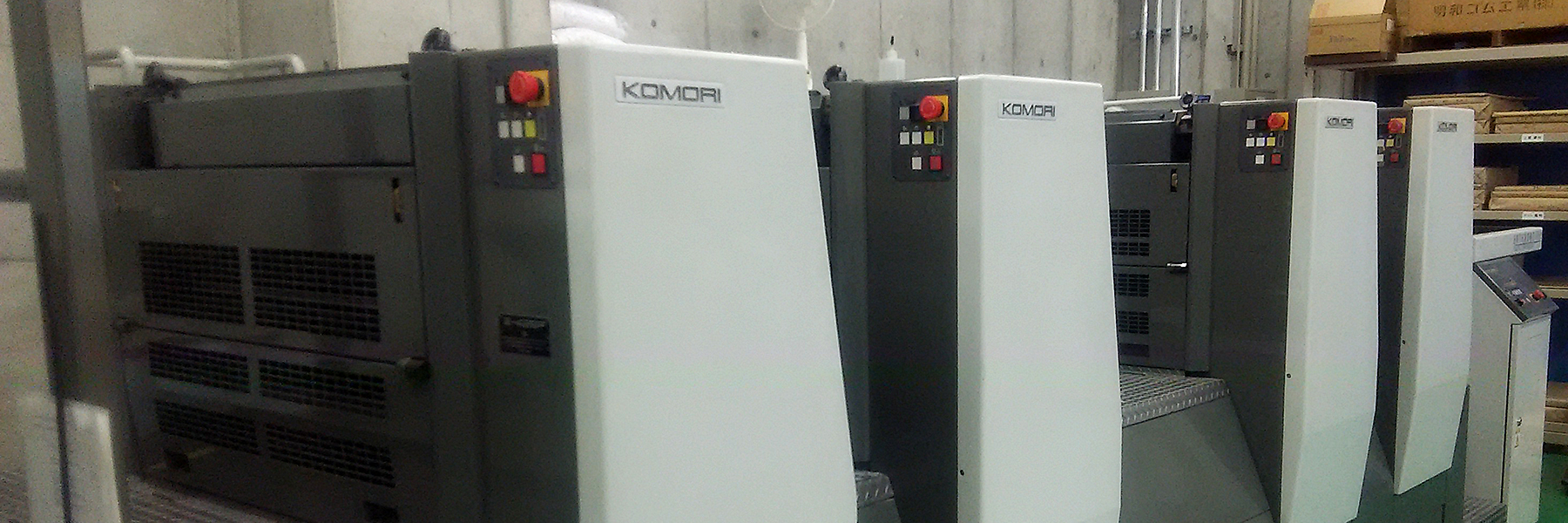 | ・KOMORI ENTHRONE 426P(4色機) ・RYOBI 660H(単色機) ・RYOBI 3300CR(単色機) |